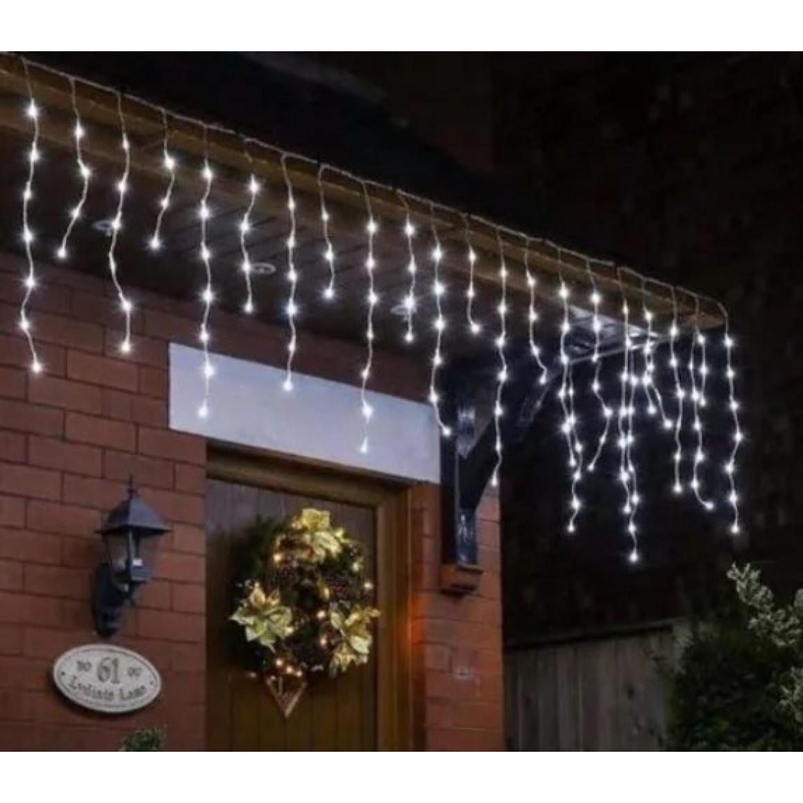 Cascata De Led 120 Led 110v branco 2,80 metros Fio Transparente