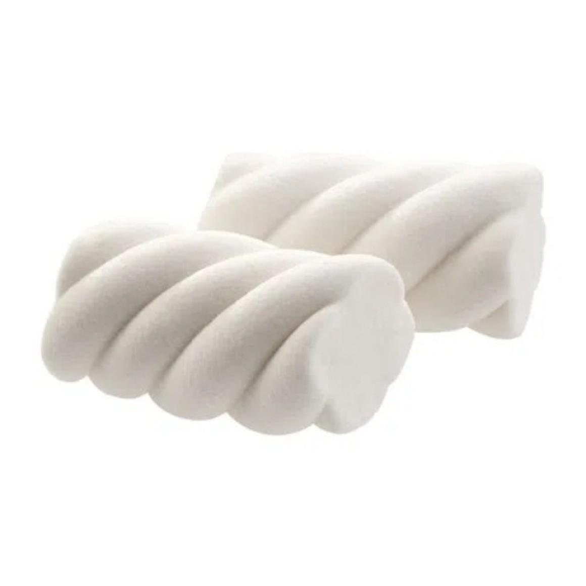 Deliciosos e macios marshmallows em formato torcido, branca e no sabor de baunilha