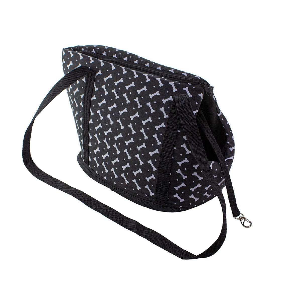 BOLSA TRANSPORTE PET N1 PRETA COM OSSINHOS BRANCO
