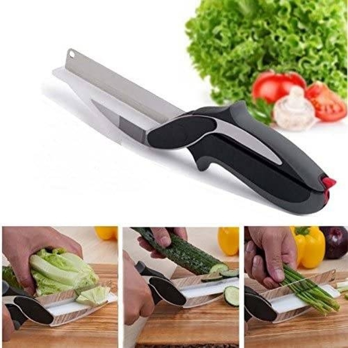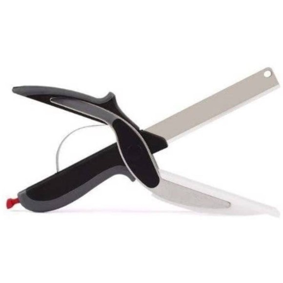 A tesoura 2 em 1 te ajuda a picar alimentos em segundos, de forma segura e limpa.