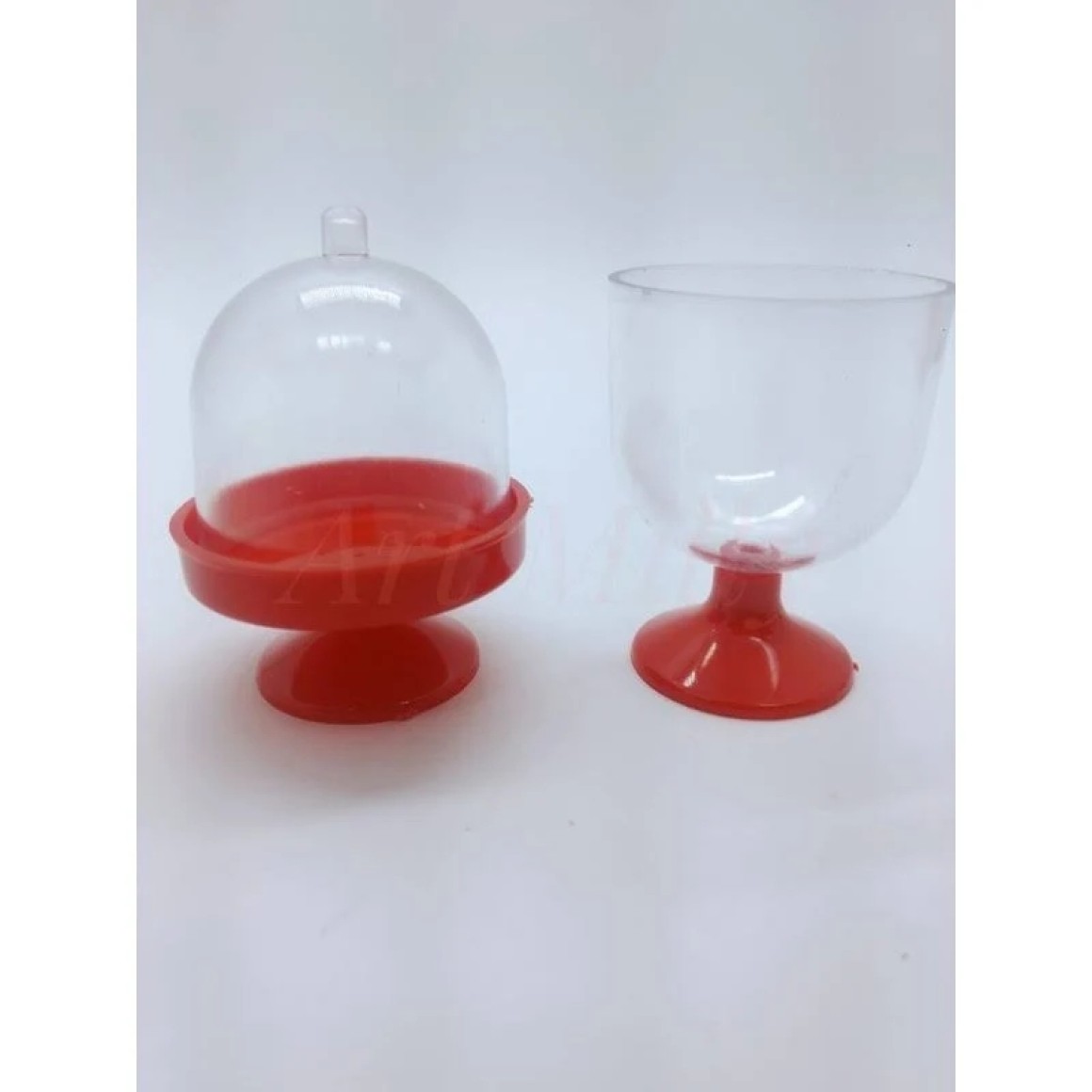 CUPULA CRISTAL ACRÍLICO BASE VERMELHO COM 10 UNIDADES