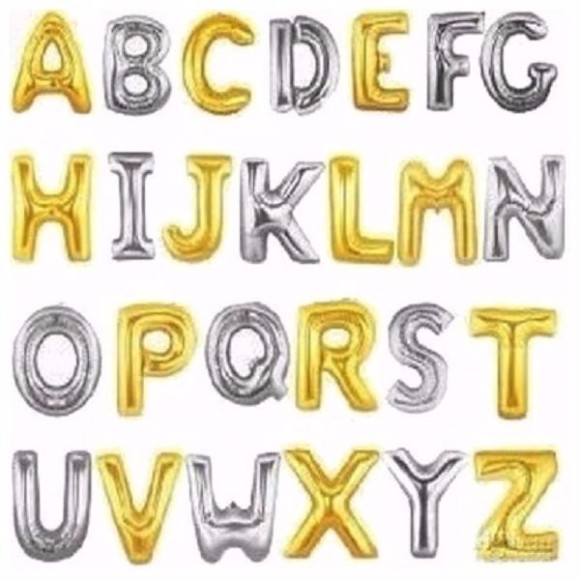 BALAO METALIZADO DOURADO E PRATA NUMEROS E LETRAS 40CM