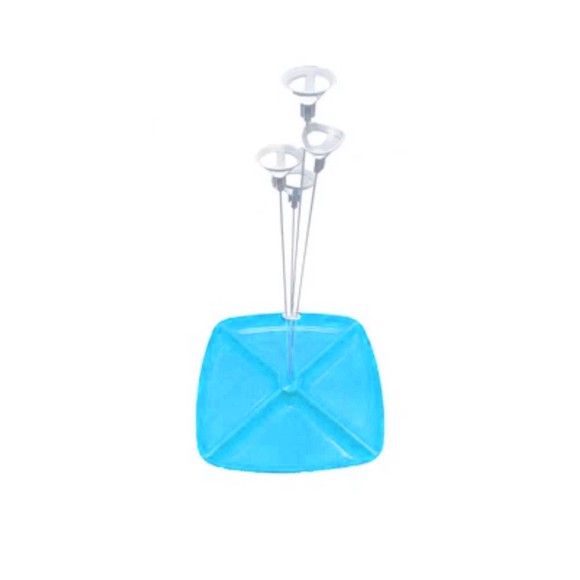 Petisqueira quadrada medindo 25 x 25 cm com pega balão de 4 hastes e 4 repartições para petiscos , perfeito para criar uma linda decoração de mesa para sua festa.
