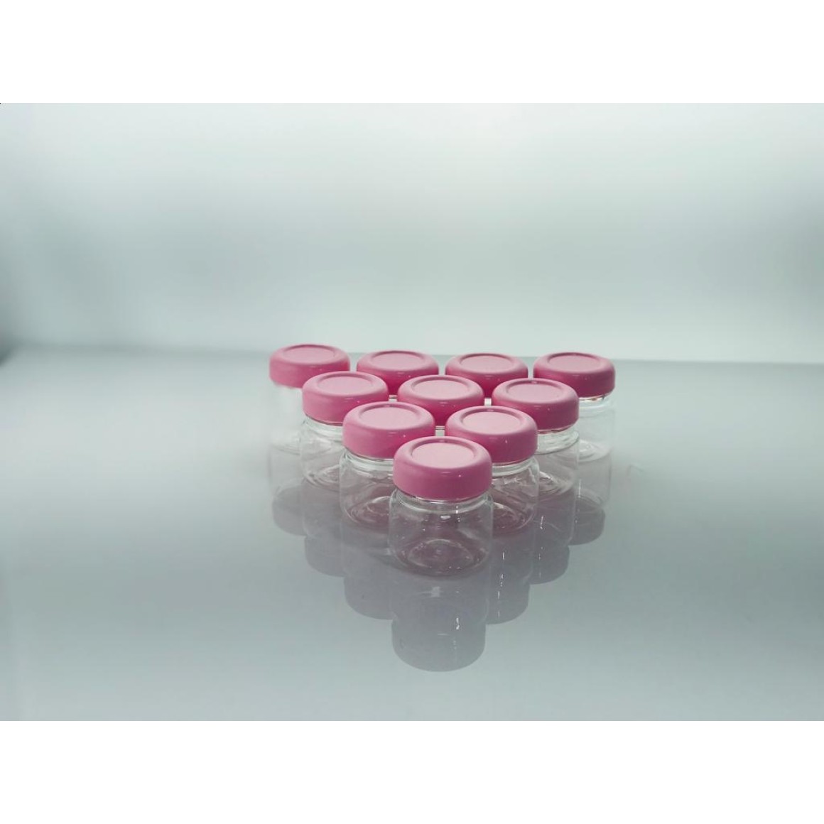 Contém: 10Potinhos de Geléia para Lembrancinhas Transparente com tampa rosa bebe