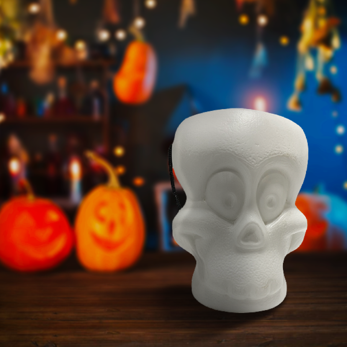 Pote em formato de caveira com alça, pode ser utilizado como porta objetos, baleiro ou decoração para incrementar o seu Halloween.
