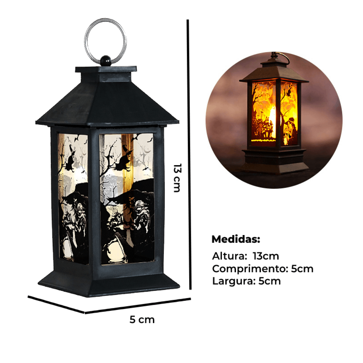 Ideal para usar na sua festa de halloween, a Lamparina é um item que vai ambientar a sua decoração de dia das bruxas e levá-la a um outro nível!