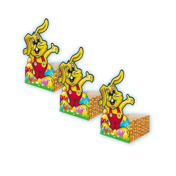 A Caixinha Coelho possui fabricação especial em papel cartão super resistente. Ela vem em um modelo quadrado,com cores diversas e na sua parte frontal possui um design de coelho feliz.