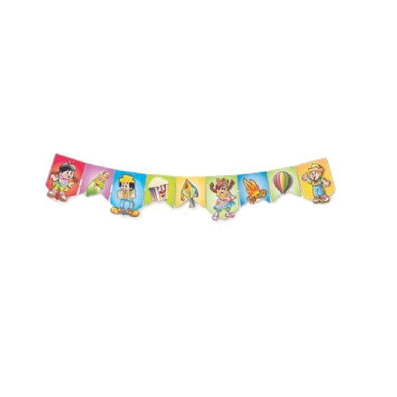 As Bandeiras Junina é fabricada em papel cartonado com alta qualidade de impressão e composta por 22 bandeirinhas coloridas, além disso possui estampas de diversos símbolos juninos, como fogueira,milho, pipoca, cangaceiro, entre outros e um cordão de barbante com 08 metros para a anexação.