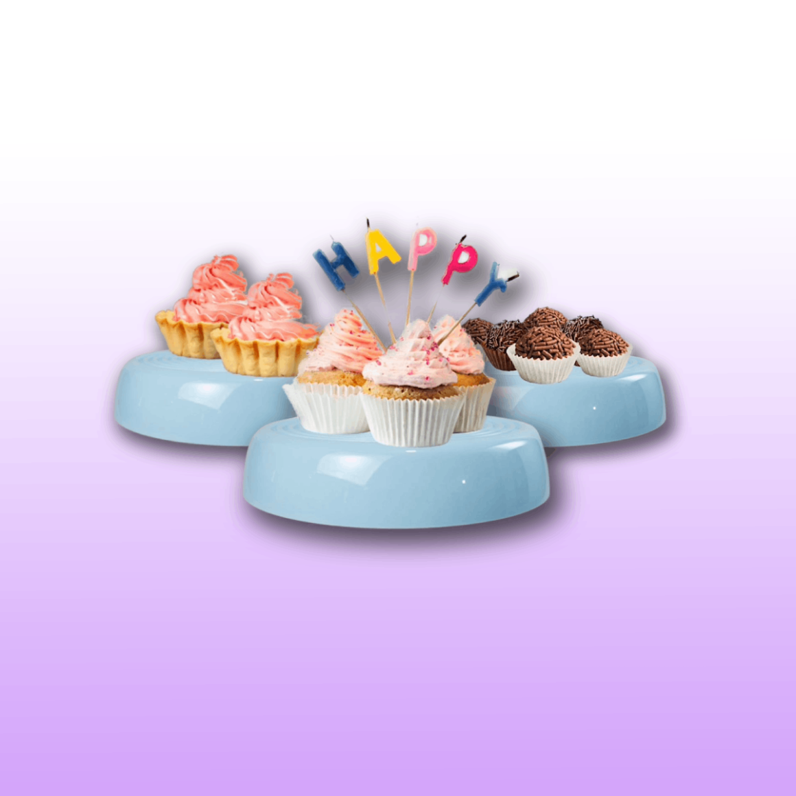A boleira modelo Alegra é um sucesso para sua festa. Pode ser usada como decoração e manter o estilo até na hora de servir as delícias como docinhos, bolos e outras guloseimas.
