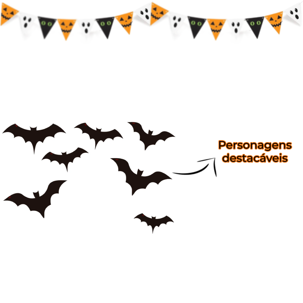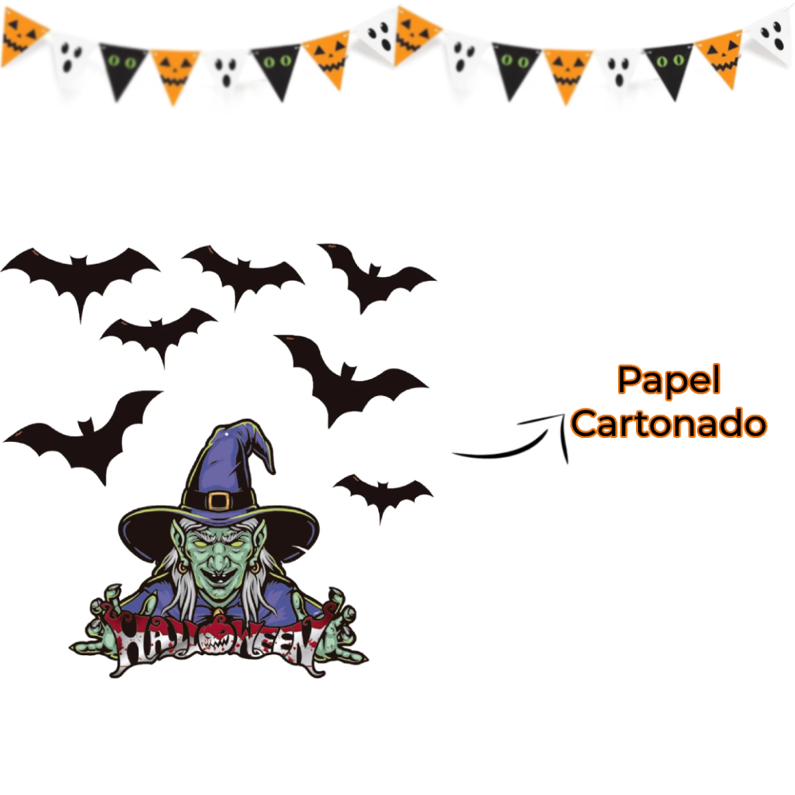 Quantidade: Embalagem com 1 Bruxa e 7 Morcegos
