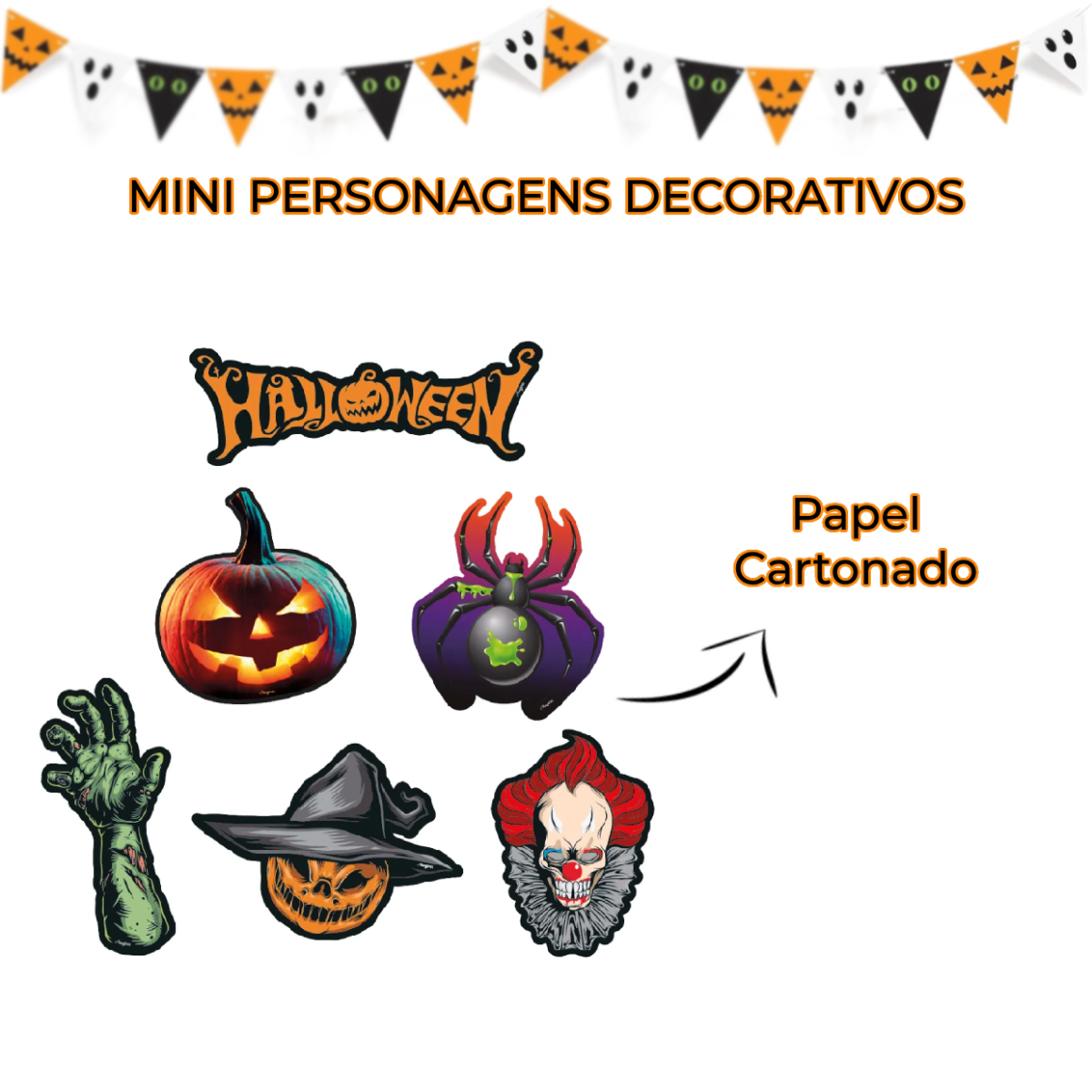 Mini Personagens Decorativos, eles são perfeitos para decorar mesas de festas, lembrancinhas, ou surpresas, todas na temática de Halloween, e prometem deixar sua festa temática ainda mais assustadora e criativa!