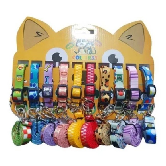 KIT 10 COLEIRAS COM GUIA PARA CACHORRO EM CORES SORTIDAS