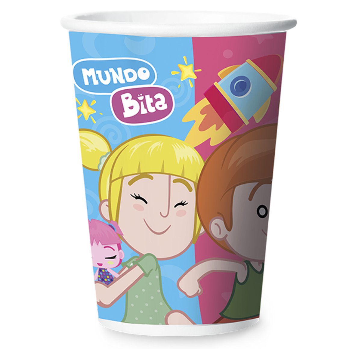 Utilize o copo Mundo Bita 2 para servir os convidados. Produzidos com papel impermeável e impressão de alta qualidade. Todos os copos são estampados e possuem a capacidade de 180ml.