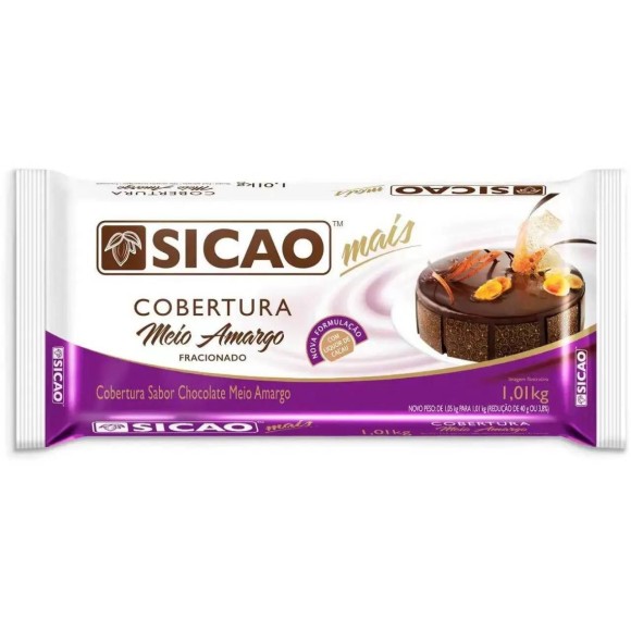 COBERTURA SABOR CHOCOLATE MEIO AMARGO SICAO BLOCOS 1,01KG - KIN FESTAS
