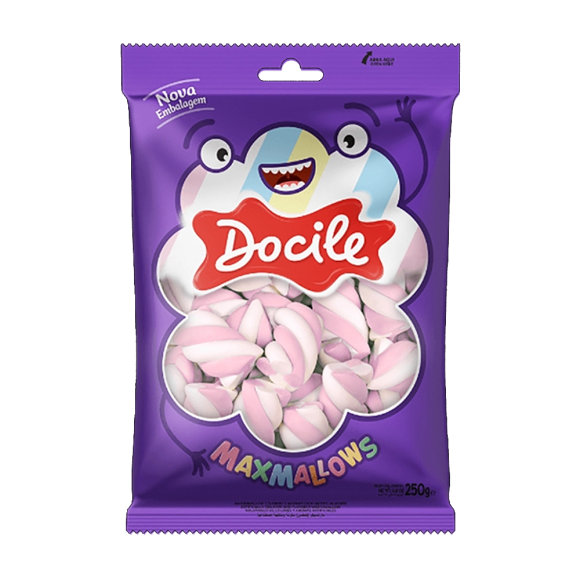 2. MARSHMALLOW TWIST ROXO E BRANCO BAUNILHA 250G DOCILE