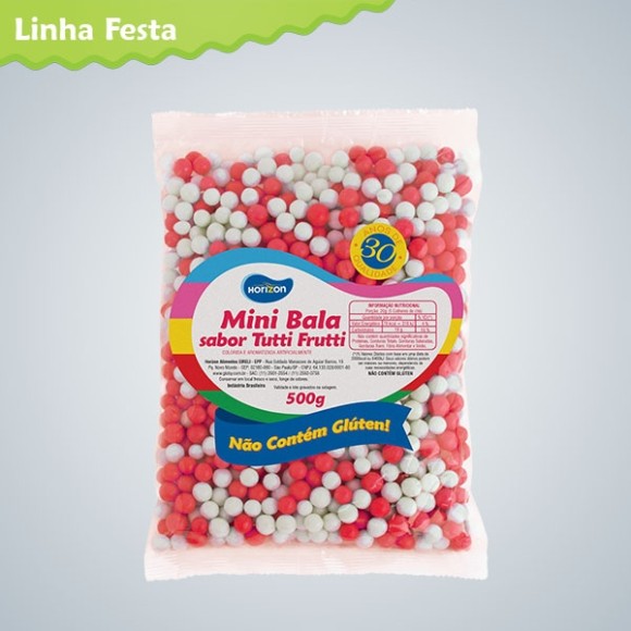 MINI BALA TUTTI FRUTTI VERMELHA E BRANCA 500G HORIZON