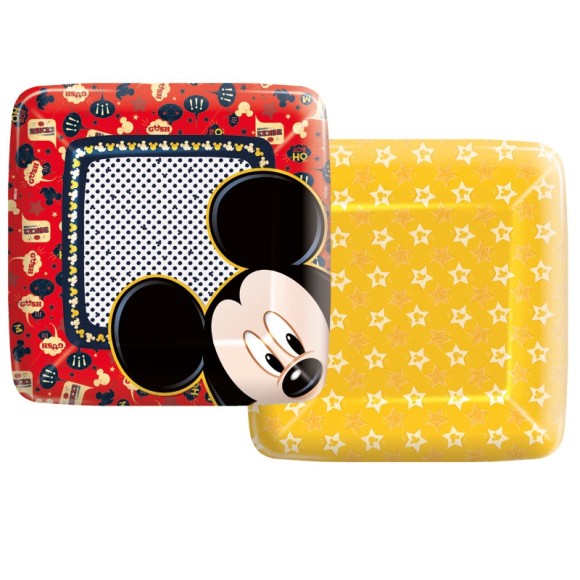 PRATO 18CM QUADRADO MICKEY CLÁSSICO C/8 - KIN FESTAS