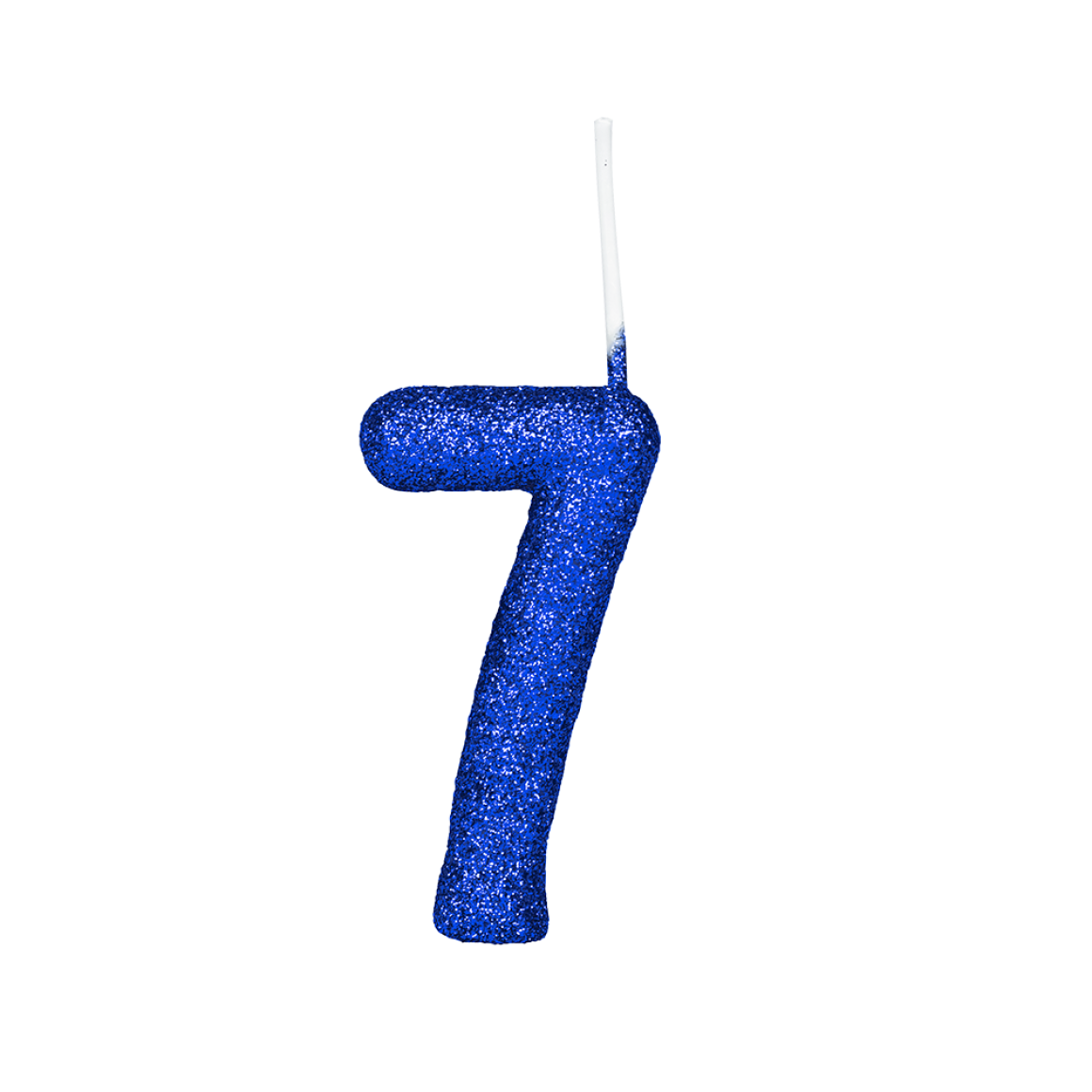 VELA CINTILANTE GLITTER AZUL NUMERO 7 REGINA