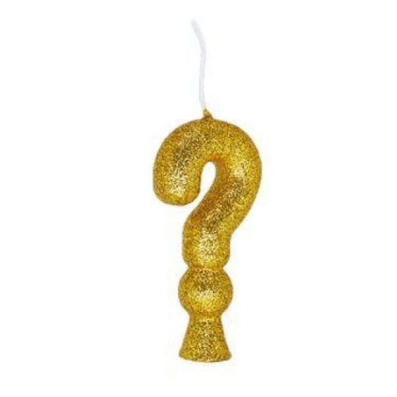 VELA CINTILANTE GLITTER DOURADA INTERROGAÇÃO REGINA