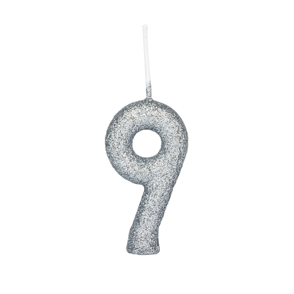 VELA CINTILANTE GLITTER PRATA NUMERO 9 REGINA