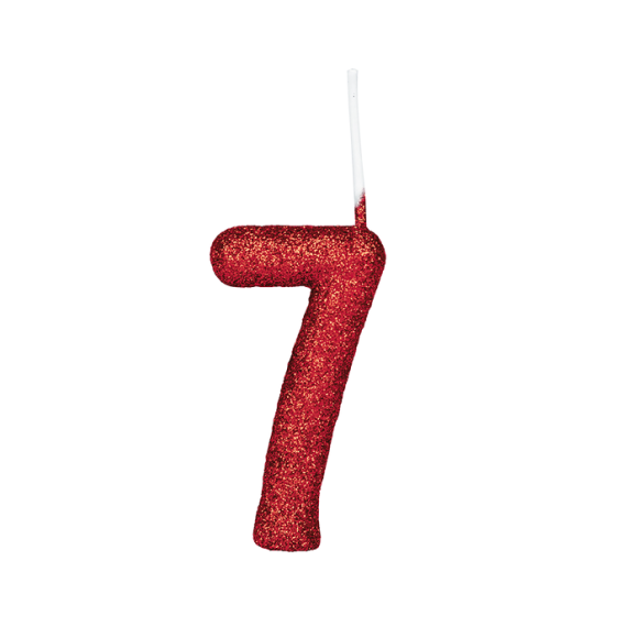 VELA CINTILANTE GLITTER VERMELHA NUMERO 7 REGINA